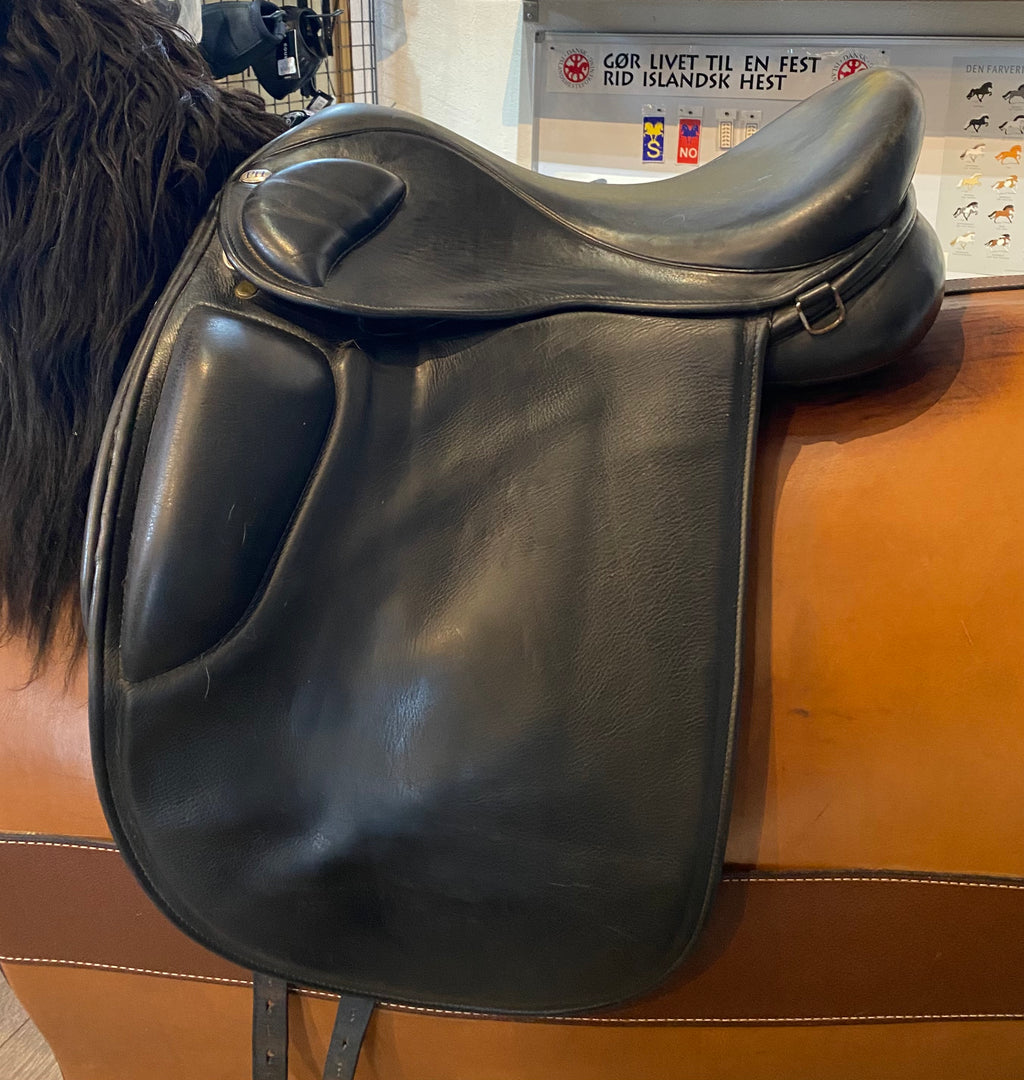 Engelsk produceret sadel - GOD kvalitet. Stoppet med uld. Udvendige korte knæpuder og dybt sæde, som giver en fantastisk støtte. Bomvidden er x-wide (kan ændres ved sadelmager).