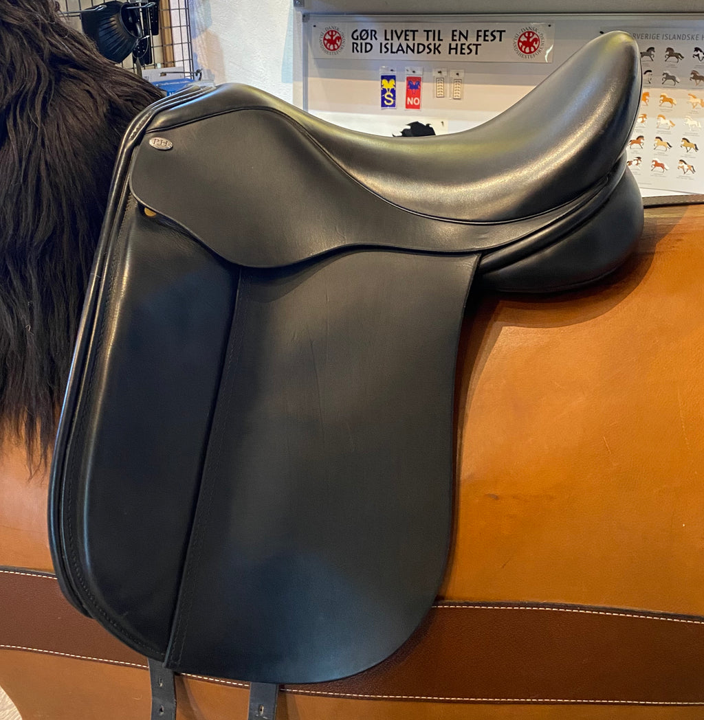 Engelsk produceret sadel - GOD kvalitet. Bomvidden er wide (kan ændres ved sadelmager). Stoppet med uld. Indvendige lange knæpuder og mellemdybt sæde, som giver en fantastisk støtte. Sadlen er MEGET velholdt, da den har været meget lidt brugt. Kvittering haves (købt fra ny den 30.03.2020). Der medfølger s-bøjler og webbers.