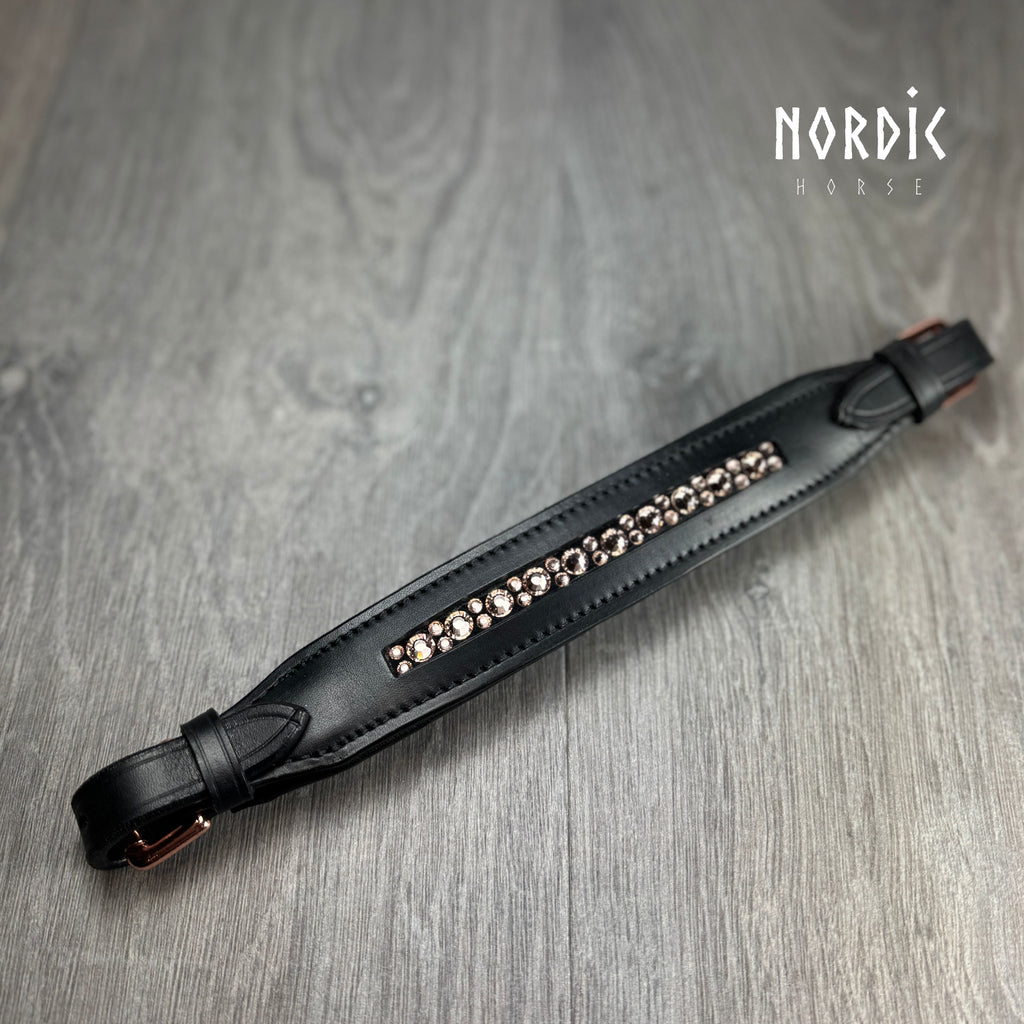 Næsedel til hackamore i sort læder med blød foring. Bredde 3,5 cm